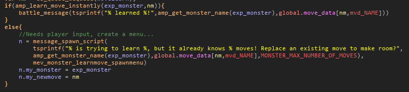 The new use script should first attempt to learn it with amp_learn_move_instantly, this function returns "false" if the monster already has a full movelist and if so you'll need to create a menu. You can copy this code from obj_battlecontrol's Step Event case 32 (but in the itemusescript the AMP ID will be argument0 and the move ID will be argument1 rather than "exp_monster" and "nm").